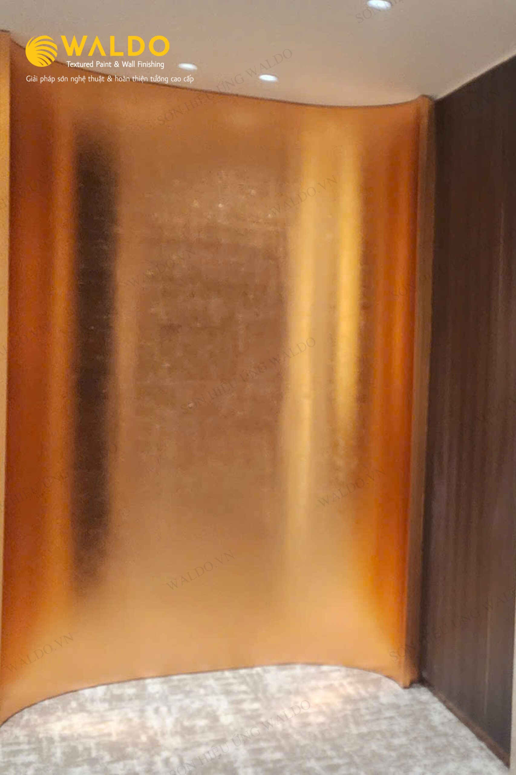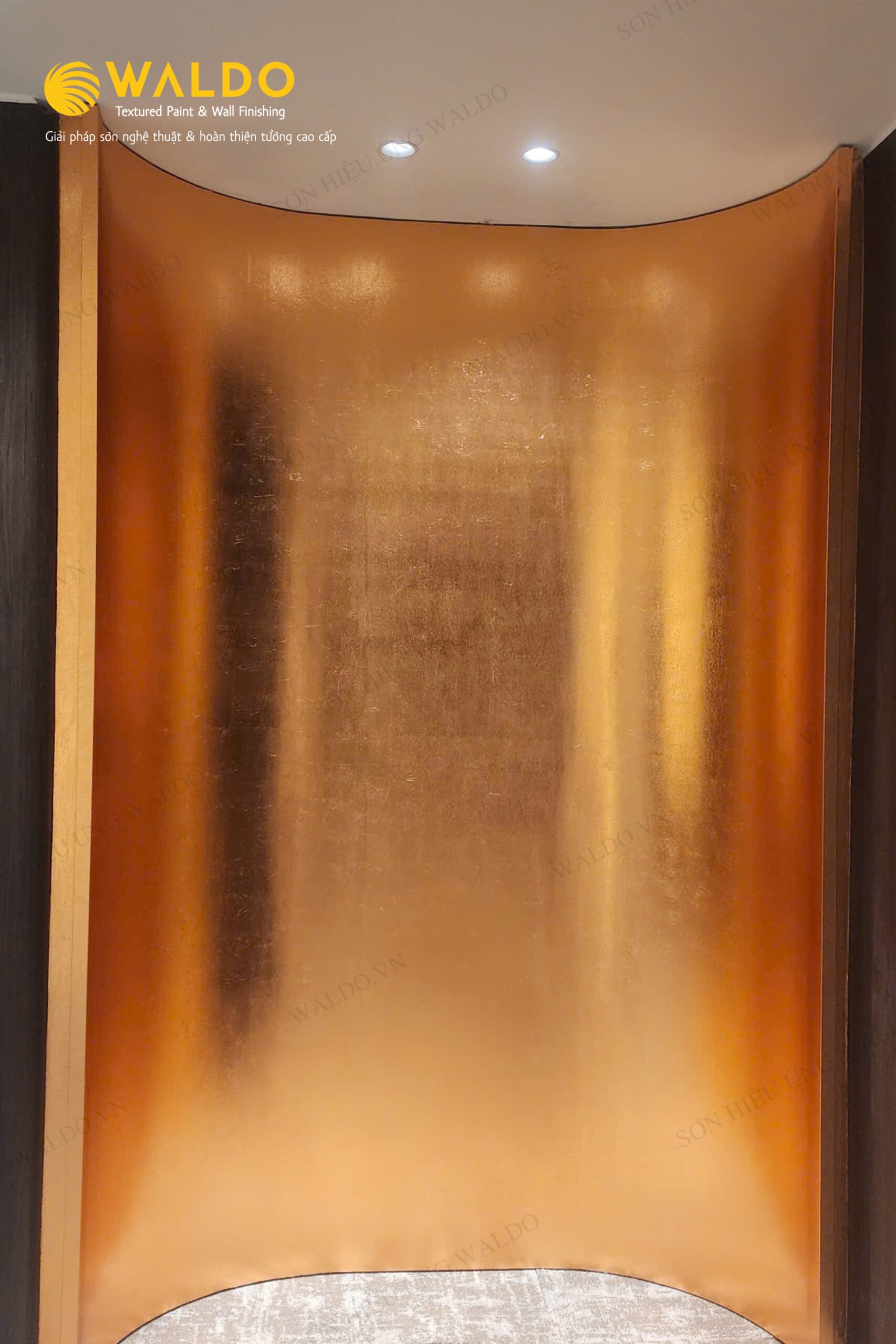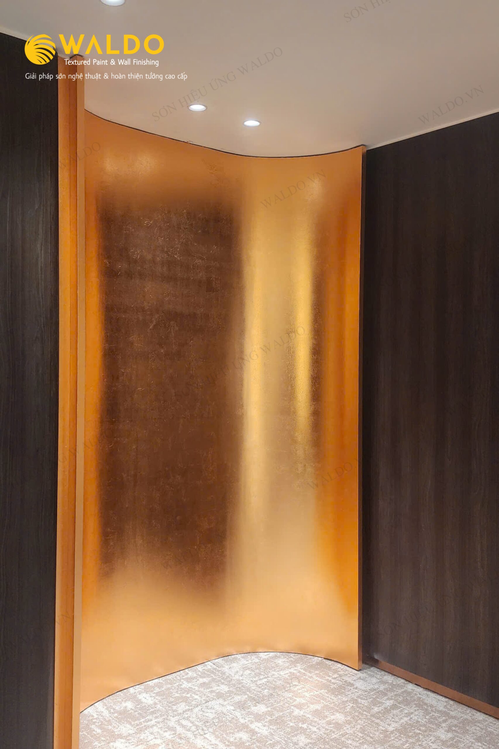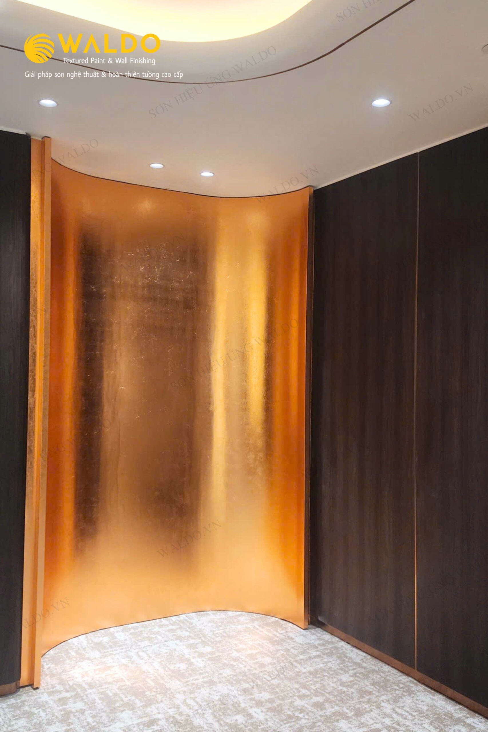 Với mong muốn đem lại không gian sống sang trọng và đẳng cấp nhất. Chủ đầu tư đã đưa ra đề bài cho Waldo mong muốn kiến tạo không gian sống không chỉ để ở mà còn để trải nghiệm. Vì thế, dòng nghệ thuật dát vàng lá đã được sử dụng để trang trí cho không gian, kiến tạo nên những mảng tường đầy sang trọng, tinh tế.