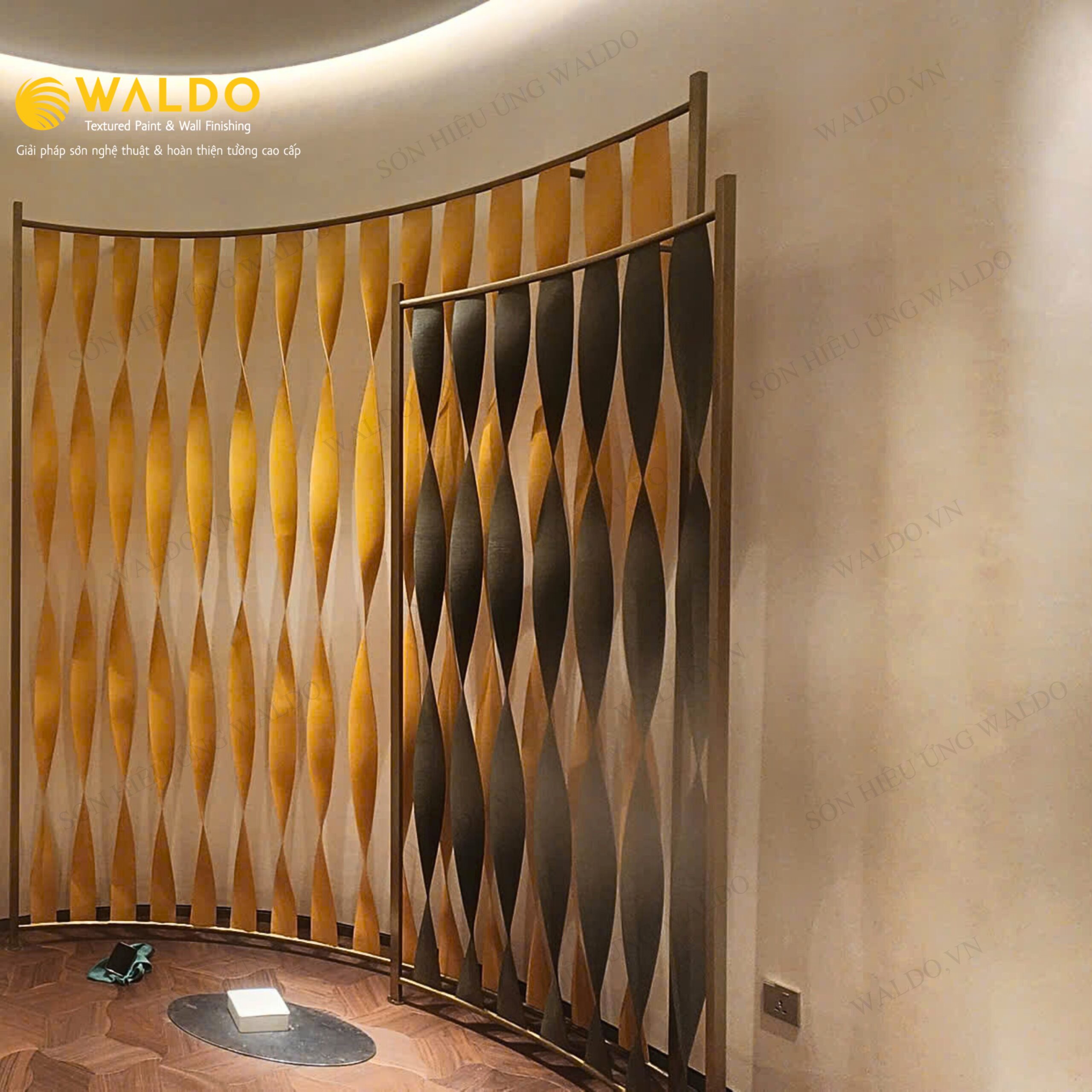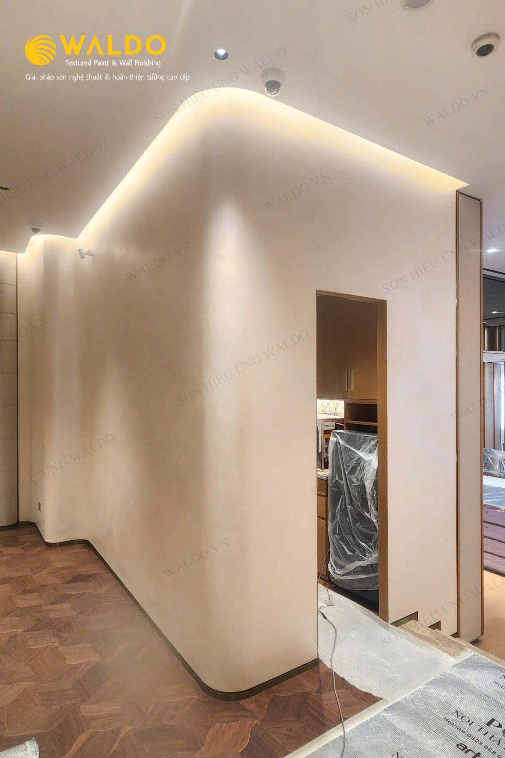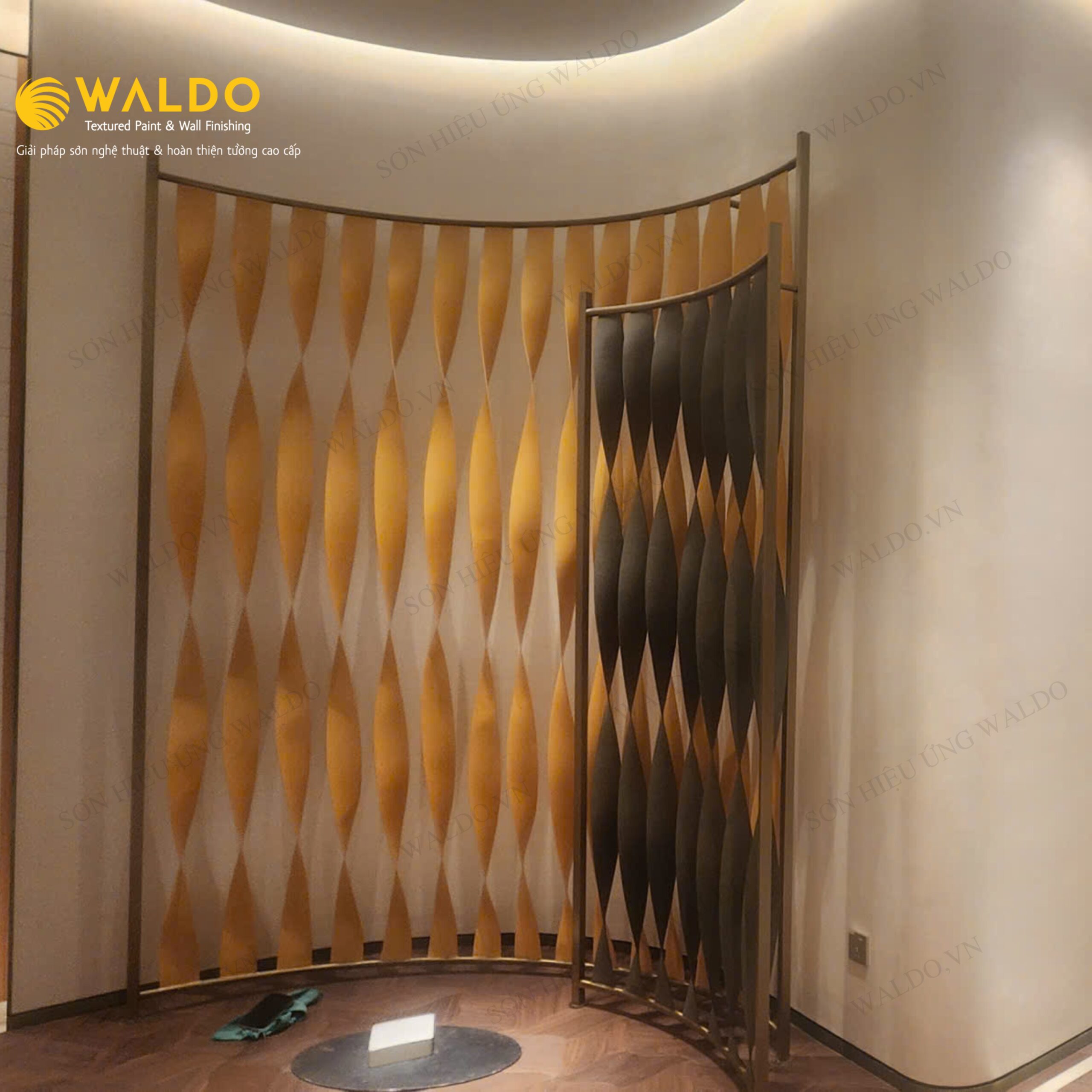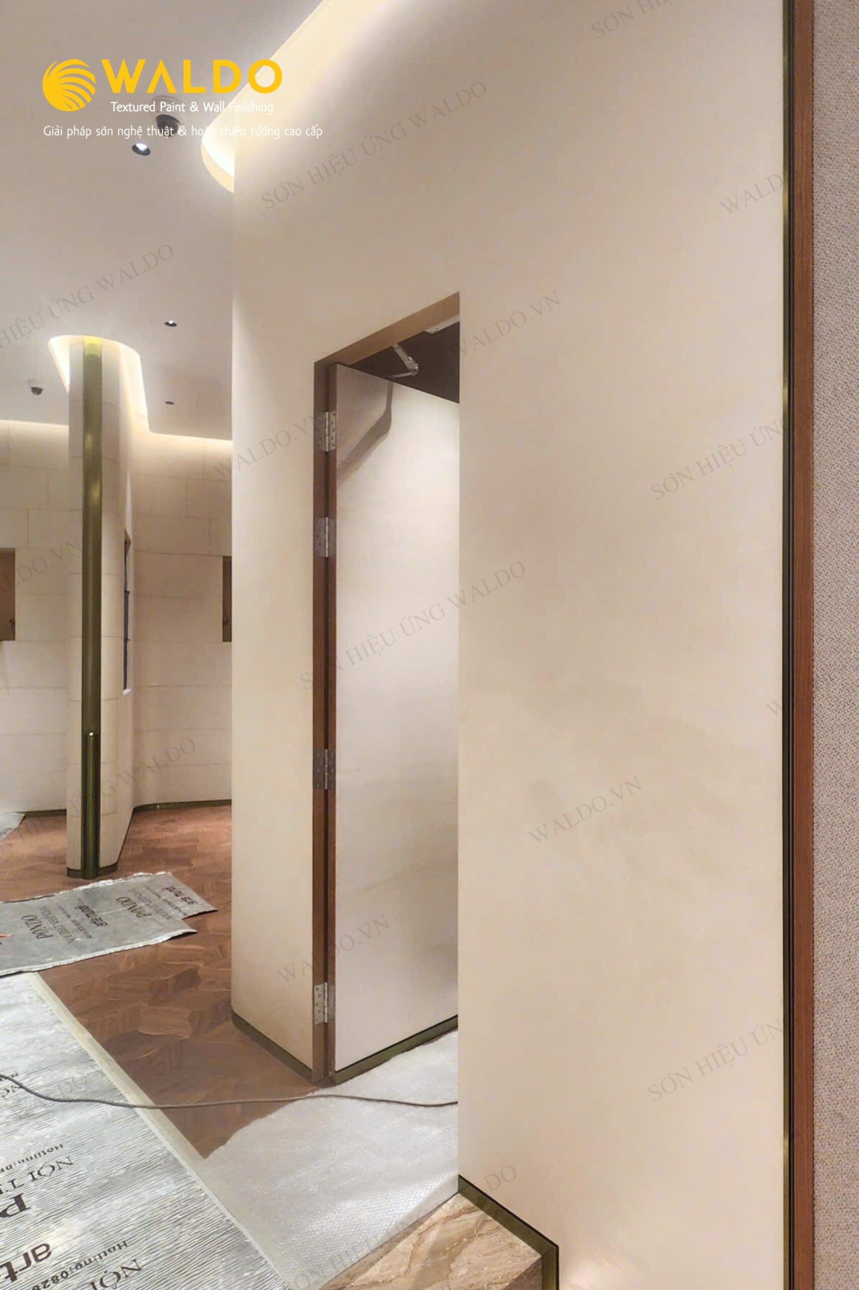 Sơn hiệu ứng Waldo không chỉ tạo dấu ấn thẩm mỹ mà còn đảm bảo độ bền cao, dễ bảo dưỡng, phù hợp với các không gian thương mại.