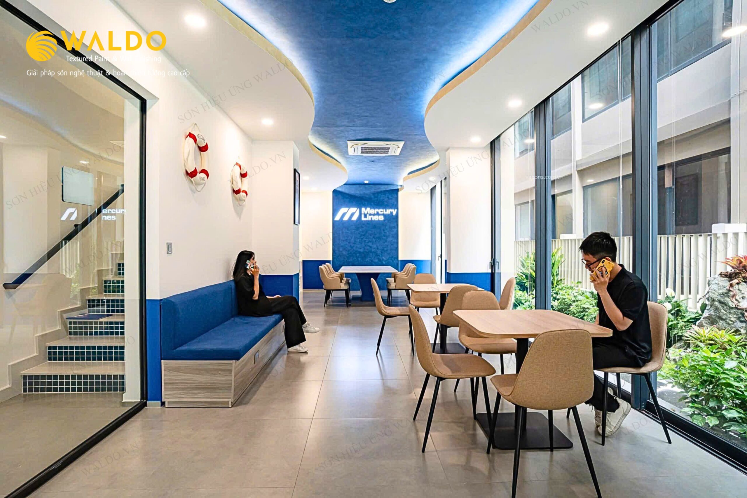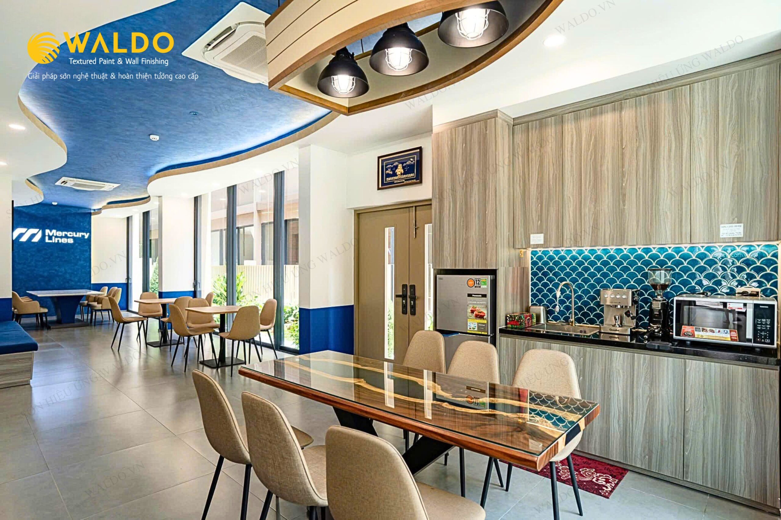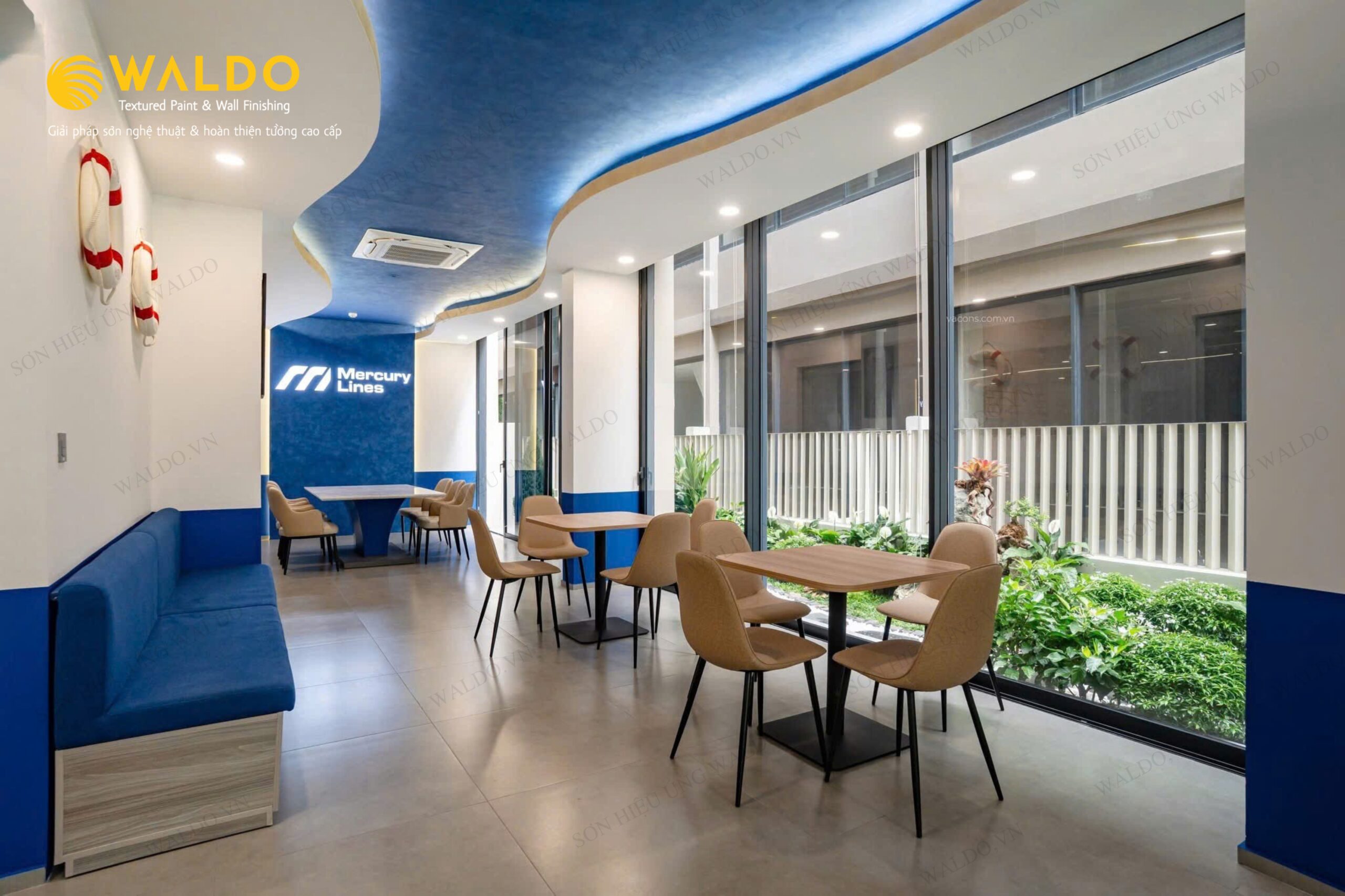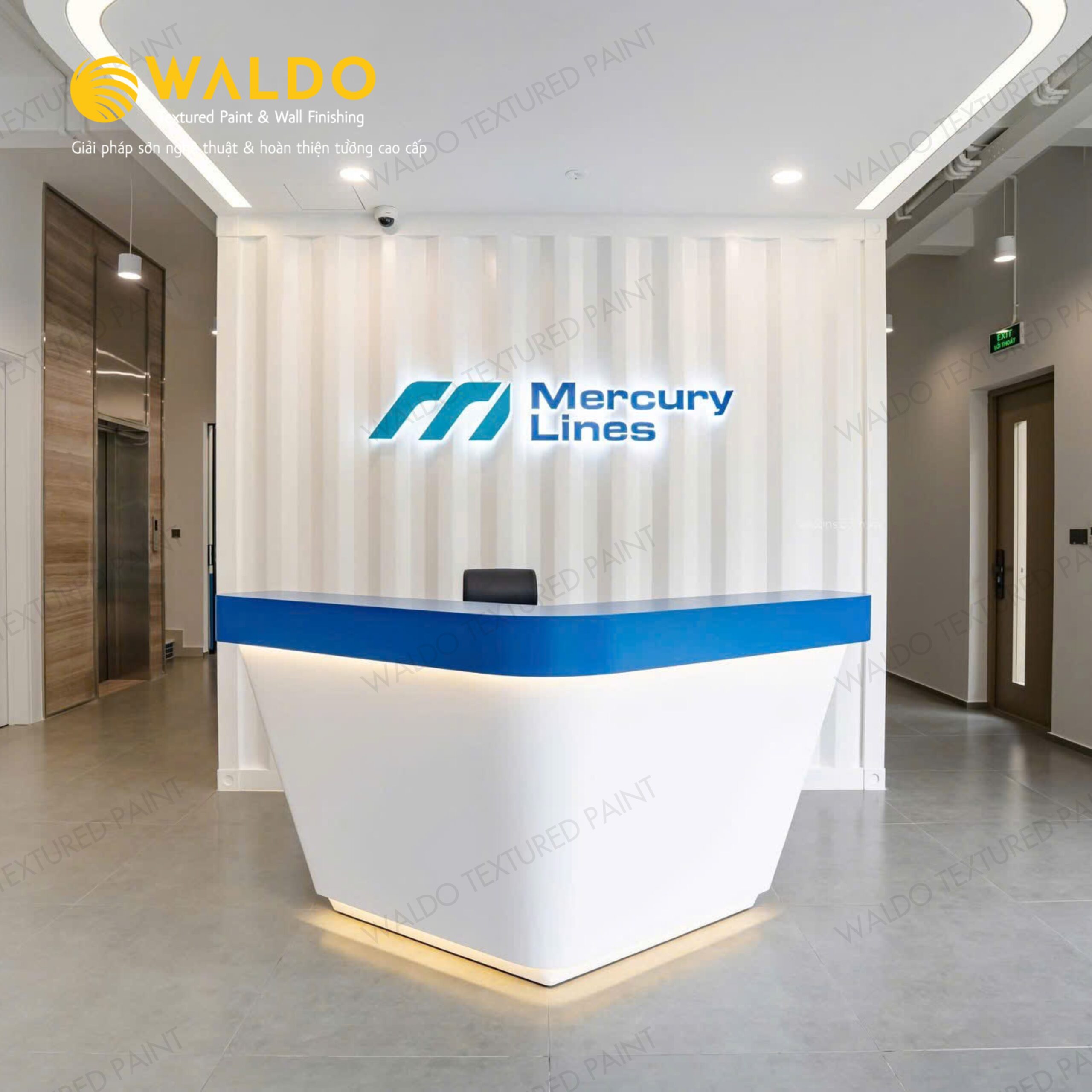 Waldo tự hào đồng hành cùng VĂN PHÒNG MERCURY LINES trong việc ứng dụng sơn hiệu ứng cao cấp vào không gian văn phòng hiện đại. Với mong muốn mang đến diện mạo độc đáo, tinh tế và thể hiện đẳng cấp thương hiệu, Waldo đã góp phần tạo nên những bức tường sơn hiệu ứng nhũ ngọc trai vân san hô phối cùng màu xanh dương của logo, tạo cảm giác ấn tượng, sang trọng nhưng vẫn đảm bảo tính bền vững, chống bám bẩn và dễ dàng bảo trì.