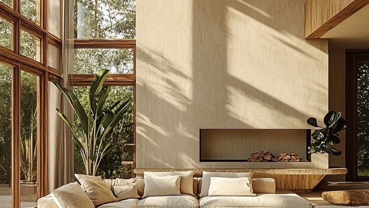 Với sự kết hợp sắc màu trung tính của sơn hiệu ứng bê tông càng làm hài hòa với các thiết kế phòng khách theo phong cách Eco.