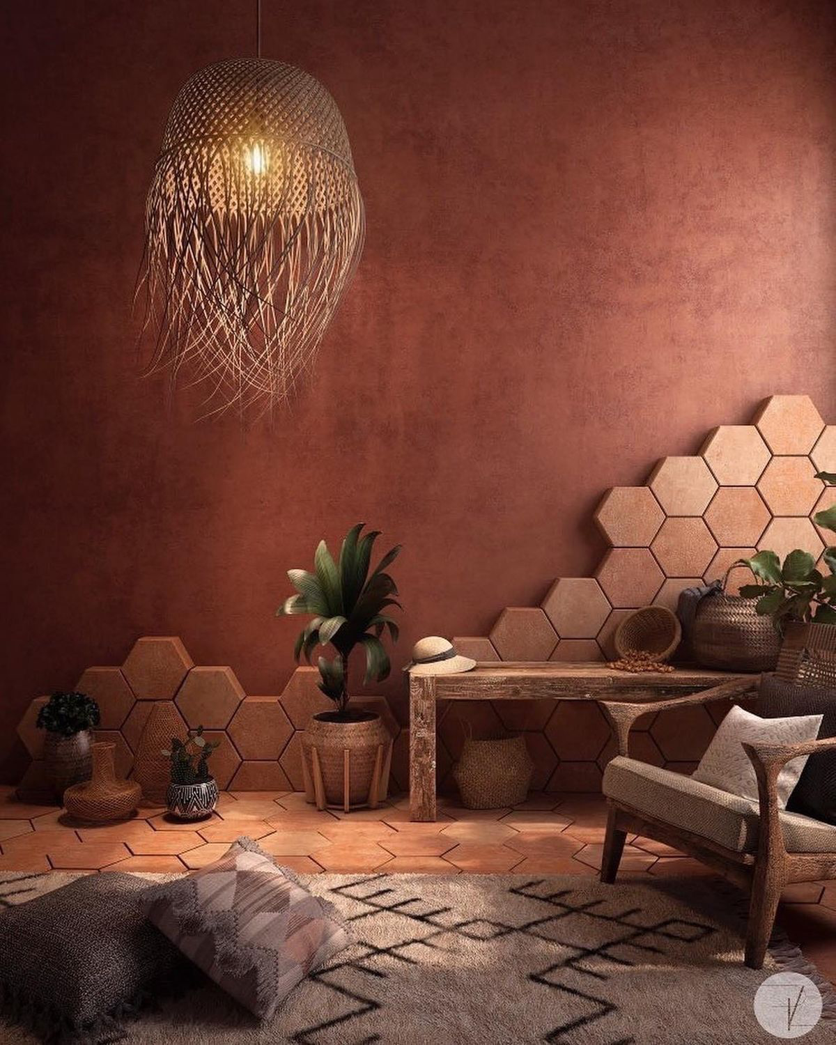 Tông màu đỏ nâu khiến không gian như trầm xuống với hiệu ứng giả cổ