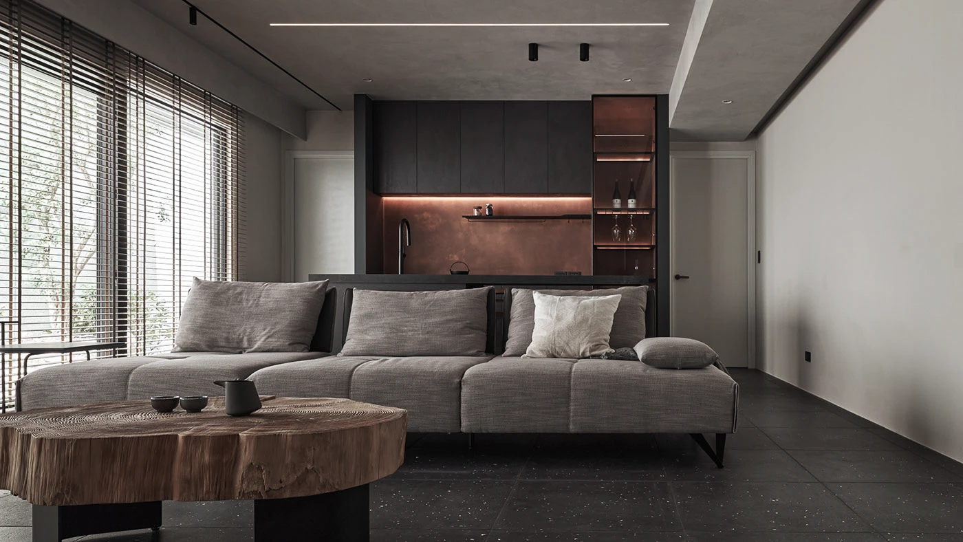 Mặc dù nhìn thấy lớp vân mây mờ của các nền bê tông như khi tháo cốt pha và mài phẳng, tuy nhiên, bề mặt khi chạm tay vào không hề thô ráp mà vô cùng nhẵn mịn và mát lạnh. Hiệu ứng bê tông hòa vào lớp nền, tạo nên cảm giác rất chất, chân thật.