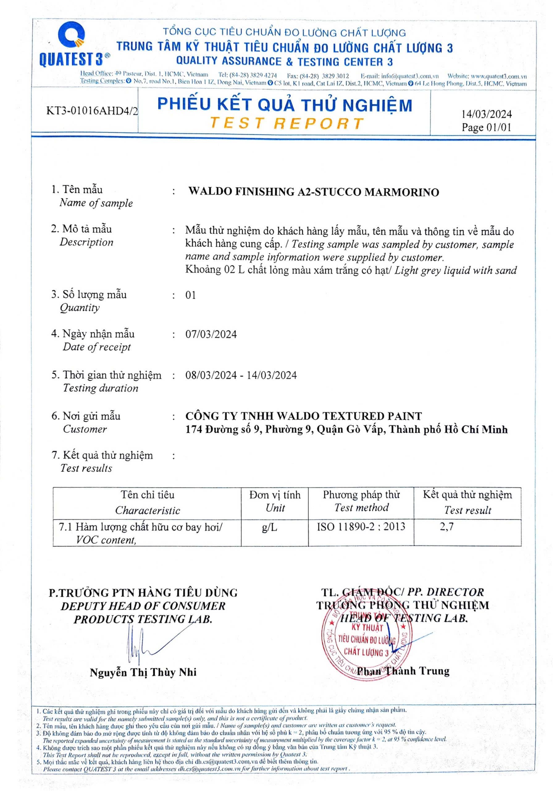 Sử dụng nguyên liệu tự nhiên như đất sét, khoáng thạch, rơm trấu và vỏ trứng, các sản phẩm sơn hiệu ứng xanh của Waldo phù hợp với các công trình chuẩn LEED, với nồng độ VOC gần như bằng 0, đảm bảo an toàn sức khỏe và thân thiện môi trường. Chúng tôi đã ứng dụng thành công tại hàng loạt công trình trên toàn quốc, từ nhà ở dân dụng đến khách sạn 5 sao, chứng minh rằng R&D của Waldo không chỉ tạo ra sản phẩm mà còn định hình xu hướng vật liệu bền vững.